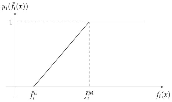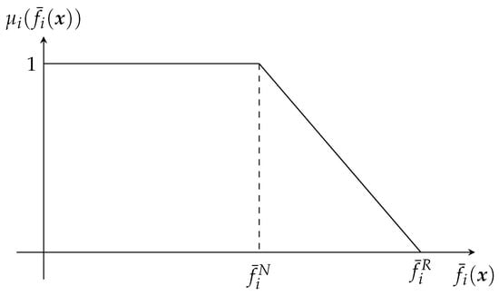 In general, the objectives may conflict with each other. Therefore, we refer to a more flexible interactive method to obtain the DM’s satisfactory solution founded on their preference degree for each goal through interaction. To explain clearly, we determine the preference information for each fuzzy objective from the DM, called the reference membership value. Here, the concept of reference member value is defined as an extended application of reference points proposed by Wierzbicki []. Subsequently, we express the difference between the actual value of the original objective function and the satisfactory value as the difference between the actual value of the member function and the reference member value, i.e., , which means that the satisfactory solution of the DM can be approached by this iterative calculation. According to the approach, model (10) is interpreted as