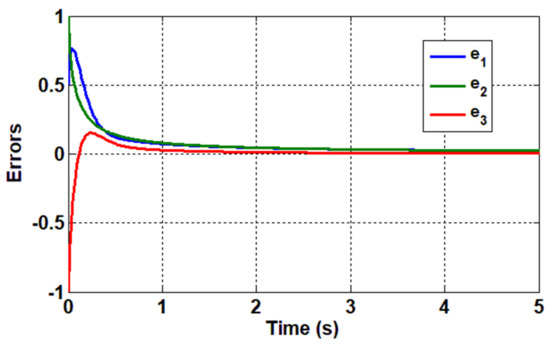. is used to excite the system to implement the simulation. The evolution of the state estimation errors , and is depicted in Figure 1.