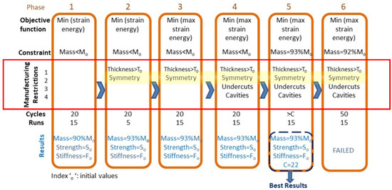 Modified image of the topological optimization process schematic with the symmetric constraint of the second phase, highlighting the constraints used (adapted with permission from [56], © 2019 by University of Niš, Serbia).