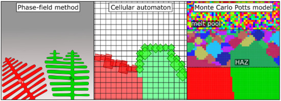 - Körner, C.; Körner, K.; Markl, M.; Koepf, J.A. Modeling and Simulation of Microstructure Evolution for Additive Manufacturing of Metals: A Critical Review. Metall. Mater. Trans. A 2017, 51, 4970–4983. [Google Scholar] [CrossRef]