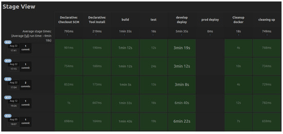 This pipeline has eight stages overall. The first tree stages fetch the code from the repository and build the project. The fourth stage tries to run the tests over the built project inside the container. Such separation of services and branches makes a safe environment for testing, quality assurance, and reliable deployment. If any bug happens with one of the services, we still have the latest stable version in the production environment, and we simply catch the bug in the staging environment.