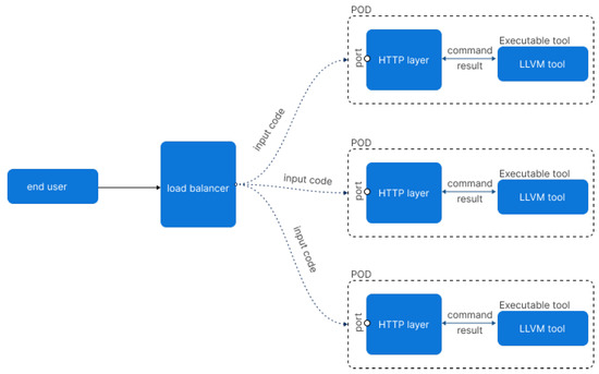 In classical monolithic architectures, the whole application runs as a single service so that all of its processes are tightly coupled [22]. Thus, if a process of an application has an issue or a spike in demand, the entire architecture should be redesigned and scaled. As the code base grows, improvement of a monolithic application’s features become more convoluted, similar to current compilers installed on clients’ machines locally or in the cloud. Based on microservice architecture, an application is built as small and independent components that can execute each application process as a service. Each service is responsible for business logic and performs a single functionality. Due to this independence, each service can be updated, deployed, and scaled to meet the demand for a specific feature [23].