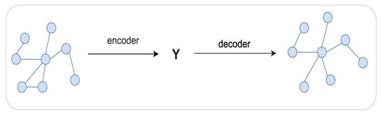 The autoencoder consists of an artificial neural network composed of an encoder and a decoder, where the encoder maps the graph structure data in the input space to the potential representation space, and the decoder then maps the data in the potential representation space to the reconstruction space, making the graph structure in the reconstruction space similar to the graph structure in the original input space. Encoder–decoder architecture combined with deep neural networks completes the reconstruction of complex networks, as shown in Figure 1 [44]. The structure of the graph autoencoder facilitates multimodal information fusion for efficient joint representation learning, and the basic encoder contains three layers, the input layer, the hidden layer, and the output layer: