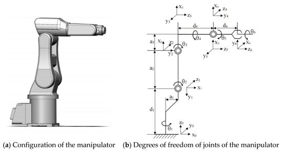 where denote the normal vector, orientation vector and approach vector of the coordinate system at the end of the manipulator, respectively. denotes the position vector of the end of the manipulator [31].
