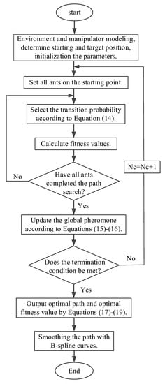 Figure 3 shows the flowchart of the manipulator avoidance path planning based on the ESACO algorithm.