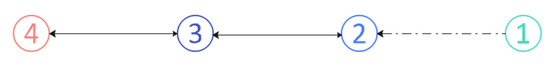 This section mainly verifies the effectiveness of the proposed event-triggered strategy and controller for multiple high-speed trains system through numerical simulation. Considering the actual situation of train operation, four trains on the same railway line are taken as the research object. The topological structure of train communication is shown in Figure 3.