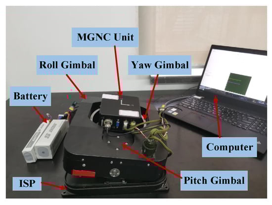 The three-axis ISP is shown in Figure 5. Its length, width, and height are 0.33 m, 0.255 m, and 0.115 m, respectively. With the camera, the total weight reaches 13 Kg. Based on the MGNC unit, ISP can get attitude errors and make corresponding control commands.