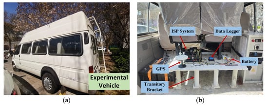 Figure 12 shows the experimental devices of the vehicle experiment. The ISP system was connected to the vehicle by the transitory bracket. The data logger was used to record the experimental data. Figure 13, Figure 14 and Figure 15 show the experimental results in the vehicle experiment. As can be seen from Figure 13, Figure 14 and Figure 15, both control methods can ensure the stable operation of the ISP system in the disturbance environment.
