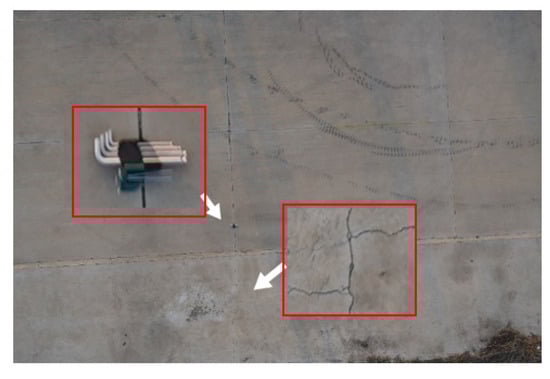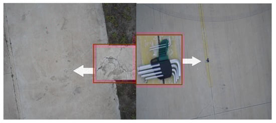 The inspection photos of the proposed method and ANNSMC are shown in Figure 18 and Figure 19. Compared with the ANNSMC, the 1 mm crack and 1.5 mm hexagon tool could be located in the photo of the proposed method clearly. The ISP system based on the proposed method could isolate different disturbances effectively to locate airport pavement diseases.