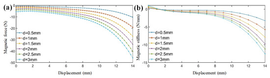 By deriving Equation (2), the negative stiffness of the magnetic force can be obtained as follows: