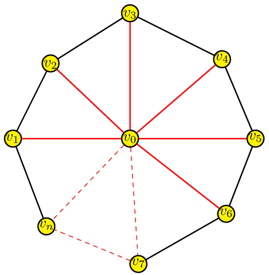 A wheel graph is a graph with , vertex connecting to all vertices, forming -cycles; see Figure 1. Let . Define if there is a connection from to . Then, is an -set.