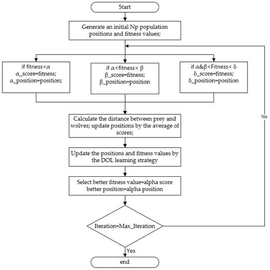 In this section, a new variant of GWO algorithm is introduced which is named as DOLGWO algorithm, as illustrated in Algorithm 1. The flowchart visualization of the algorithm is also shown in Figure 2.