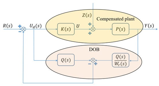 In the conventional DOBC scheme, the main difficulties lie in determination of , which in turn creates limitations on the stability and performance of a system. In addition, the nominal parameters need to be known. Therefore, the main idea in [,] is to introduce a stable and minimum-phase (MP) transfer function with a tunable and desired performance instead of nominal plant . Hence, the limitations of the DOBC are solved and its application is broadened.