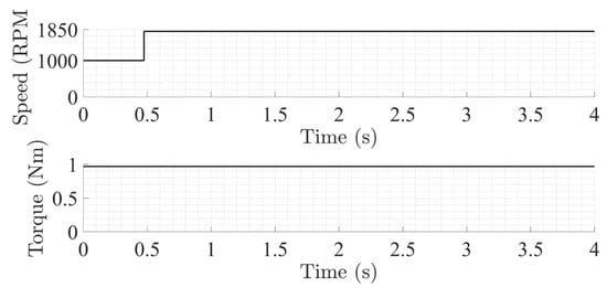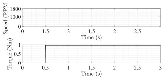 Step-change of the load torque from zero to a rated value at constant speed of 1800 rpm—Scenario 2.