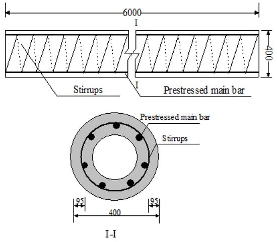 Schematic diagram of the reinforcement of PHC pipe pile (pile diameter = 400 mm) (all units are in millimeters).