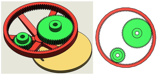 3D and planar view of a cogwheel system illustrating the usefulness of geometric loci.