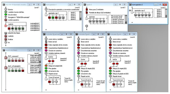 This section shows the programming code (Figure A1, Figure A2, Figure A3, Figure A4, Figure A5, Figure A6, Figure A7, Figure A8, Figure A9, Figure A10, Figure A11, Figure A12, Figure A13, Figure A14, Figure A15, Figure A16, Figure A17, Figure A18 and Figure A19) that allows one to discard a portion of the hyperbola in the case of two secant circles and the geometric locus of the centres of the circles that are external tangents to both—obviously, only a segment of the curve will fulfil the conditions since the zone shared by the two circles, where tangent circles are inevitably inscribed, contains no solutions.