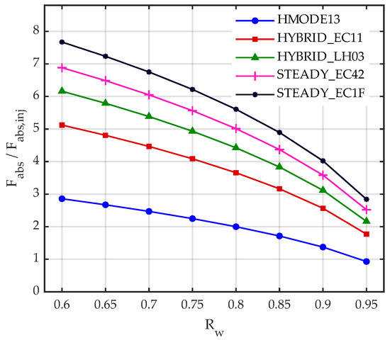 Because the reflection coefficient of EC radiation from the wall of the vacuum chamber in ITER is not specified in the ITER database, it is reasonable to conduct an analysis with a variation in the reflection coefficient in a certain range of values. The predicted value of the effective reflection coefficient of the ITER vacuum chamber is very high Rw ≈ 0.95 (even taking into account the port plugs, the space under the divertor and the cryopumps) and is a rather weak function of the frequency of the EC wave [4] (see Figure 7 therein) but in reality, this value could be lower due to surface roughness.