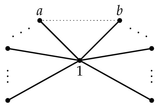 We suppose that there exists an such that for any . Since , we get . For all , . So, must be distinct from . However, our assumption has led us to a contradiction. Therefore, there are no different equivalence classes like , which is equivalent to the equivalence class . Because the graphs of equivalence classes have one edge and two vertices, one of these vertices corresponds to the equivalence class , while the other vertex likewise corresponds to the equivalence class, which consists of all elements of the . □