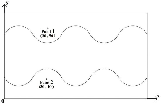 Two different points are chosen like a probe to measure temperature values. Based on these probes as shown in Figure 9, temperature values are presented in Figure 10 at point 1. As shown from the figure, temperature values are increased suddenly depending on the temperature difference; this increment turns out to be a linear increase and it becomes constant due to the phase change. As expected, higher temperature values are obtained for higher temperature differences. The highest temperature value is formed for Case 4 and the lowest one for Case 1 for all values of temperature difference for point 1 as shown in Figure 10. Temperature fluctuations are observed in the figure due to the beginning of the melting at that point and time-dependent heat transfer. If we look at the temperature variation through point 2, different temperature trends are shown with time due to unmelted phase change material inside the heat exchanger. At that point, again, the lowest temperature is shown in Case 1 but the temperature increases almost linearly with time and there is no constant value due to unmelted PCM.