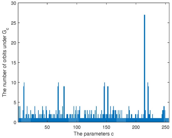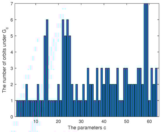 By Theorem 1, we have and . Then, U is invariant under the group generated by and . Thus, U is a union of orbits under , where is generated by and . Assume that the order of is , i.e., . For , the orbit of x under is In the proof of Theorem 1, it can be seen that f is differentially 4-uniform if for Cases 1, 2, and 3. In fact, we can prove the following conclusions.