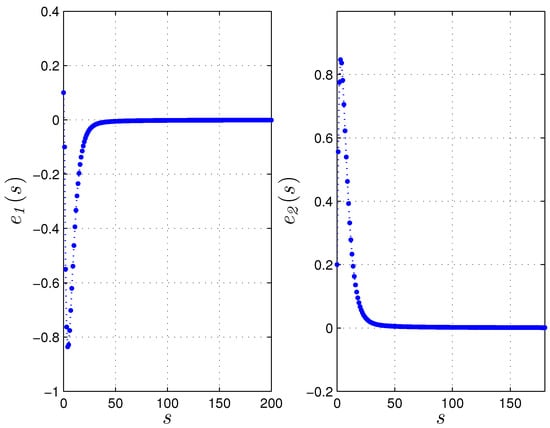 where and are synchronization controllers that have to be designed. Using the master (18) and slave discrete systems (19), the error dynamics can be derived as