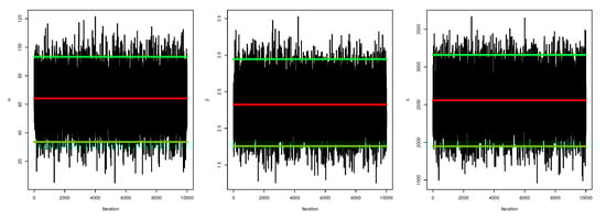 The first simulated M variations will be eliminated in order to promote convergence and devote attention to the selection of initial values. The samples have chosen , an approximate posterior sample generated for sufficiently large N, which may be required to develop the inferences of Bayes.