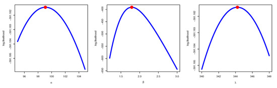- Cheng, R.C.H.; Amin, N.A.K. Estimating parameters in continuous univariate distributions with a shifted origin. J. R. Stat. Soc. Ser. B Methodol. 1983, 45, 394–403. [Google Scholar] [CrossRef]