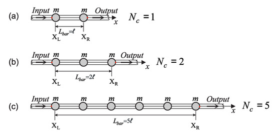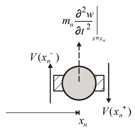Figure 1. This beam is periodic in terms of material, geometry, boundary condition, and spatial variation of the lumped mass along its axis. It was assumed that there was a perfect adhesion between the lumped masses and the beam parts that constituted this system. This beam, in which deformations depend only on shear force