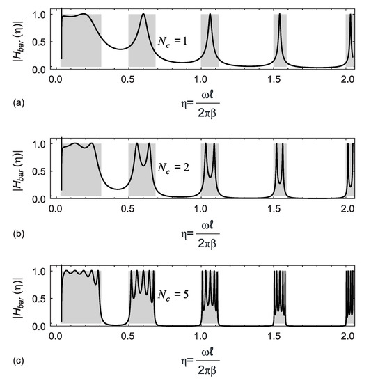 4.2. Transmission Response of the Finite Periodic Region in an Infinitely Long Beam
