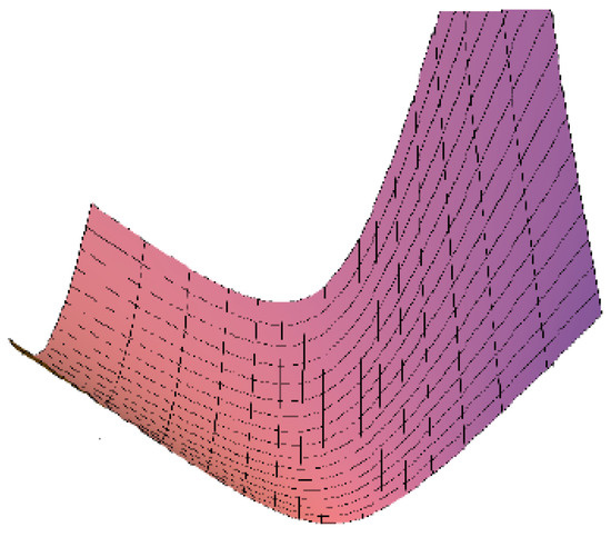 So, for , , and there are special values of ϑ and v; the graph of the surface is presented in Figure 5.