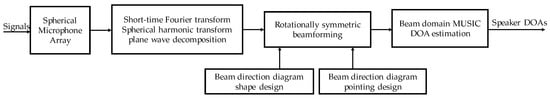 The framework of the proposed spherical harmonic domain beam-space MUSIC algorithm (SHD-BMUSIC) DOA estimation scheme is shown in Figure 2.