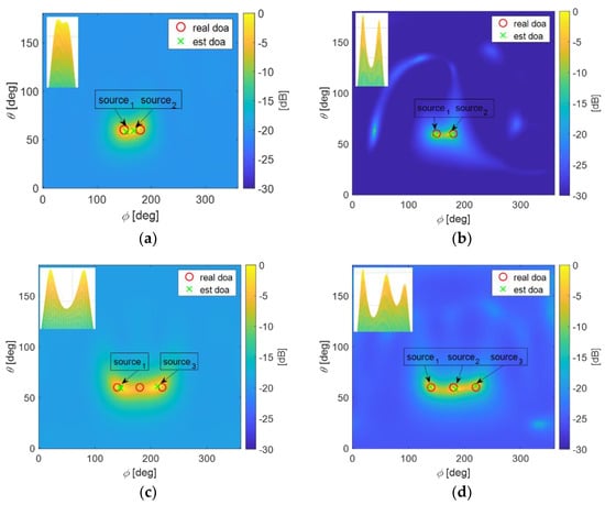 Finally, the spectral peak search is carried out and the direction corresponding to the peak is the DOA of the sound sources.