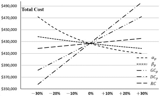 There were a few crucial parameters that were taken into consideration, and a sensitivity analysis was carried out in order to explore the influence of these parameters on the total cost under the optimal software release time. Figure 6 presents the sensitive analysis results for the related parameters , , , , and . As can be seen in Figure 6, in the comparison of the parameters of the mean value function, is more sensitive to because the value of parameter is relatively low and cannot get a multiplicative effect with . Therefore, if the condition can be satisfied, the learning effect is significant enough to accelerate the efficiency of debugging work. Moreover, misestimating and will disturb the testing project’s budget plan. In order words, if the manager overestimates and , it will cause an underestimation of the testing cost. Furthermore, the misestimating of and would also impact on the release decision. For an example, if the manager overestimates and , he/she will shorten the planned testing time and rush to release the software system. Such an outcome may cause clients’ dissatisfaction and damage the company’s reputation due to the unreliable system released. How can the manager increase the testing efficiency? The manager can provide more job training to the testing staff in advance, but it also increases the expenditure in job education. Even if the investment in job education can effectively increase and , the manager still considers the trade-off between the investment in the staff’s skills and the benefit from reliability improvement and cost reduction. Additionally, the time-dependent routine cost and the debugging cost will also influence the testing cost. In this case, reducing 30% of the routine cost can save about 10.5% of the testing cost. However, saving the debugging cost can have a better effect on reducing the testing cost since a 30% deduction of the debugging cost can save 16% of the testing cost. Accordingly, the manager must take all the factors into consideration to make an appropriate decision for the testing work.