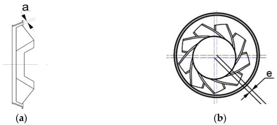 In the actual manufacture of rotating machinery, quality asymmetries caused by casting, machining accuracy, and assembly errors will lead to the presence of some eccentricity [17,18]. Ren et al. used a combination of a separated vortex simulation and an acoustic finite element method to investigate the aerodynamic noise of a centrifugal fan with an eccentric impeller and found that the rotational frequency due to the eccentric effect of the impeller was significantly higher under eccentric conditions [19]. Tao et al. added a small eccentricity to the impeller in their simulation of a mixed-flow pump, capturing a 50 Hz pressure pulsation in both computational and experimental results that were not predicted in the simulation using a normal impeller [20]. Cao et al. investigated the effect of impeller eccentricity on centrifugal pump performance and verified that efficiency decreased with increasing eccentricity.
