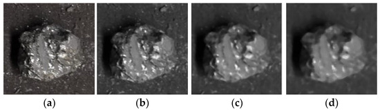 The effect of the three filtering methods. (a) Original image; (b) 3 × 3 filtering; (c) 5 × 5 filtering; (d) 7 × 7 filtering.
