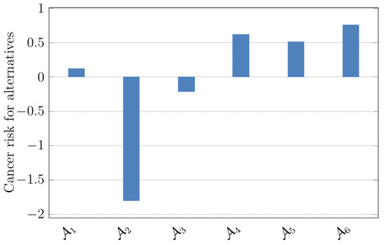 The ranking shown in Table 12 for the cancer risk of the alternatives is displayed in Figure 5 graphically.