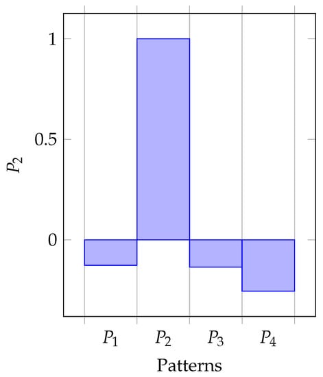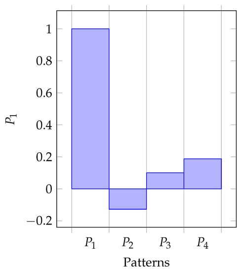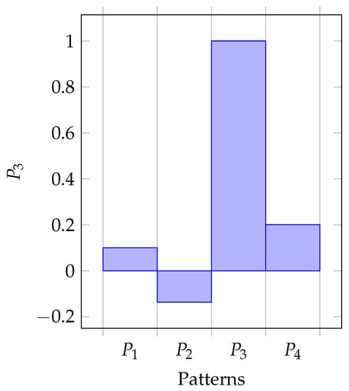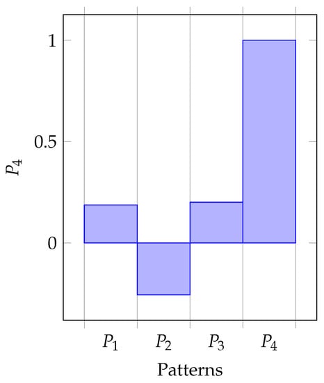 which imply the following interpretations; pattern can be classified with pattern (since the correlation coefficient is the greatest), pattern can be classified with pattern (since the correlation coefficient is the greatest) and patterns and can be classified with each other (since the correlation coefficients and are the greatest in each cases). Certainly, the Pythagorean fuzzy correlation coefficient matrix is symmetric, i.e., and each pattern is reflexive to itself, i.e., . The zero-order partial correlation coefficient results show that the four patterns have positive linear relationship with each other with the exceptions of , and .