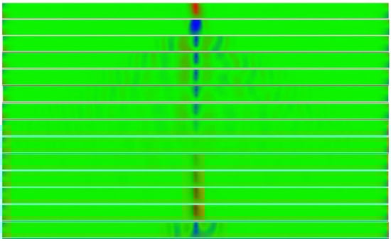 The simulation parameters were chosen as follows, in accordance with typical literature values and identical to our previous simulations [25,26,27]: saturation magnetization JS = 1.005 T, exchange constant A = 1.3·10−11 J/T, anisotropy constant zero as usual for permalloy (Py), and damping constant α = 0.02. The magnetoelastic anisotropy was neglected.