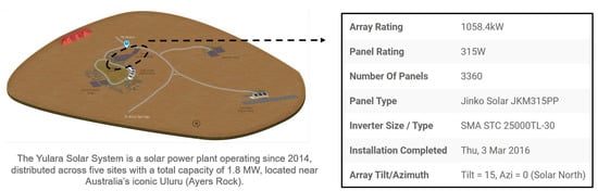 - DKASC, DKA Solar Centre; Alice Springs, Australia. Available online: https://dkasolarcentre.com.au/locations/alice-springs (accessed on 25 March 2022).