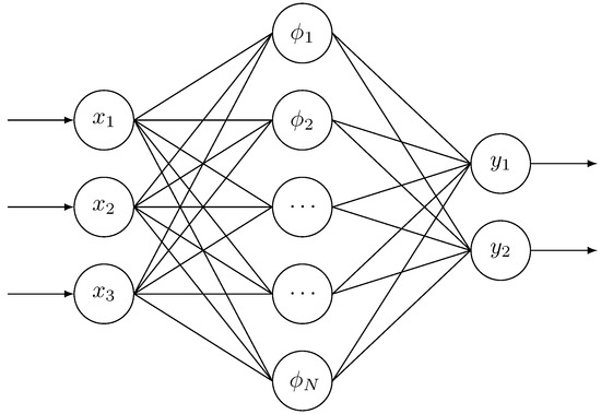 A RBFNN is a three-layer network, which includes input, hidden, and output layers, as shown in the following Figure 1.