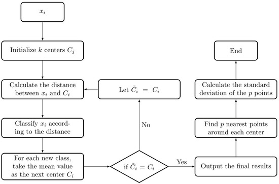 where is the l-th cluster, and is the center of cluster . The primary process of the K-means clustering algorithm is as follows: