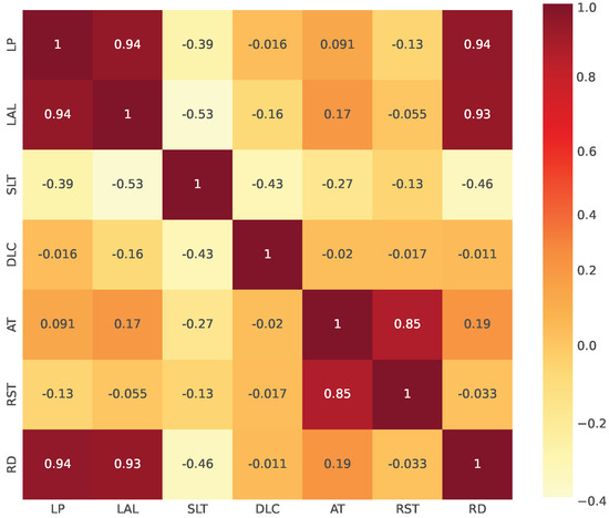 It can be seen that the features highly correlated with the rutting data are LP and LAL. However, there is also a high correlation between these two features, so only LAL is retained in this paper. In addition, this paper keeps AT due to the high correlation between AT and RST. Finally, the rutting data are extended by four essential features: AT, LAL, SLT, and DLC.