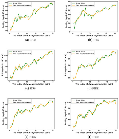 Data augmentation was performed in the analysis of spectral data [32]. Data density is increased by adding Gaussian noise to the original data, thereby reducing prediction error. Data augmentation is becoming increasingly common in computer vision and pattern recognition, especially in image processing [33,34,35]. Take an image as an example. Data augmentation is simply deforming the image to augment the data set and deal with image deformation caused by different camera angles. The most commonly used methods are left and right flip, random crop, rotation, translation, noise perturbation, brightness and contrast transformation, and many other simples and efficient methods. In addition to enhancing image data, neural networks have been widely used in the enhancement tasks of time-series data. Guillermo et al. [36] develop a probabilistically composed electrocardiogram generation algorithm, used synthetic data to enhance training convolutional neural networks, and achieved good classification results. Snow [37] uses multiple Generative Adversarial Network (GAN) stacks to simulate a variety of multivariate time-series data and apply it in the financial field. Li et al. [38] introduce the Transformer algorithm based on GAN to solve the problem that traditional algorithms cannot effectively model long sequence data points with irregular time relationships. However, few augmented models for asphalt rutting data are based on neural network algorithms. So far, the work has yet to be conducted on the augmentation of rutting data, which shows that the augmentation of rutting data is meaningful.