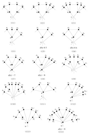 In the sequel, let , , , and . We will reduce these 14 configurations one by one.
