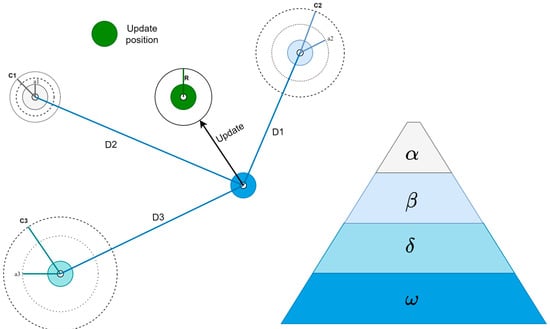 Figure 4. Position updating in the GWO algorithm [27].