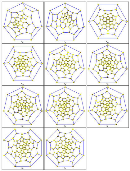 - Considering each of the molecular graph of the specific fullerene structures: , , , , , , , , , , .