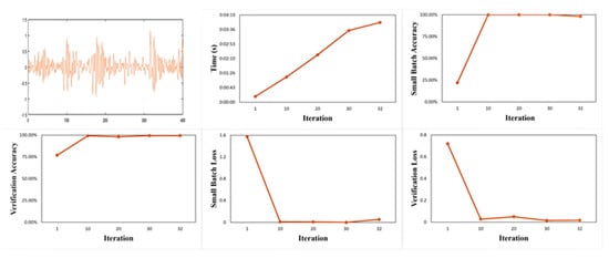 The learning rate of this experiment is constant and appropriate and will not be adjusted during the training process. According to the experimental results shown in Figure 4, Figure 5 and Figure 6, it can be seen that the pictures clearly show the relationship between the number of iterations and the training time, small batch accuracy, verification accuracy, small batch loss rate, and verification loss rate. The more iterations there are, the higher the small batch accuracy and verification accuracy, and the lower the small batch loss and verification loss. When the training time is the main evaluation index, the times of the TSK-BLS and CNN are approximately the same and lower than that of the BLS. When the small batch accuracy and verification accuracy are the main evaluation metrics, the TSK-BLS and BLS have high accuracy, and the CNN has relatively lower accuracy compared to them.