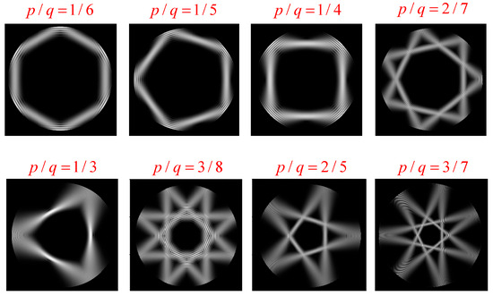 where is the shortest distance to the center for a wave inside the billiard. The relationship between and can be connected from both the quantum and classical OAM theories. From the quantum momentum , the semiclassical OAM can be expressed as . On the other hand, the quantum OAM can be directly in terms of the azimuthal quantum number as . Consequently, the relationship between and can be given using . In classical ray dynamics, the distance for a periodic orbit with indices (p, q) can be found to be , where q is the number of turning points at the boundary during one period and p is the number of windings during one period. Using and , Equation (25) can be rewritten as