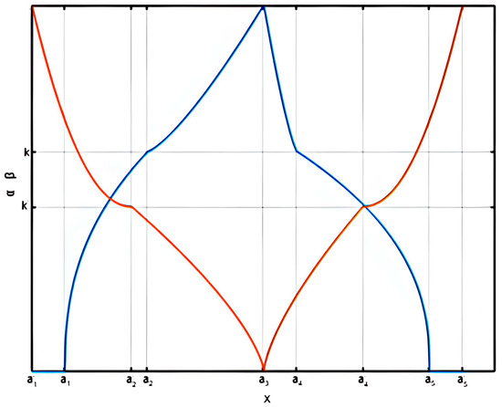 After these definitions, we evaluated the arithmetic operations on the NLPIFNs. Letting represent two NLPIFNs, we assumed that , , , , , , , , , and are the same for both NLPIFNs. Employing the cuts approach, addition and subtraction of the two NLPIFNs proceeded as follows: